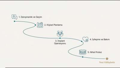 Bu süreci bir binanın inşası gibi düşünebilirsiniz: Önce sağlam bir temel oluşturmak için zemine (çene kemiğine) kolonlar (implantlar) yerleştirilir. Betonun tam olarak kuruyup yerleşmesi (iyileşme ve kemik kaynaşması) beklendikten sonra, üzerine uzun yıllar dayanacak estetik ve fonksiyonel yapı (kalıcı dişler) güvenle inşa edilir.